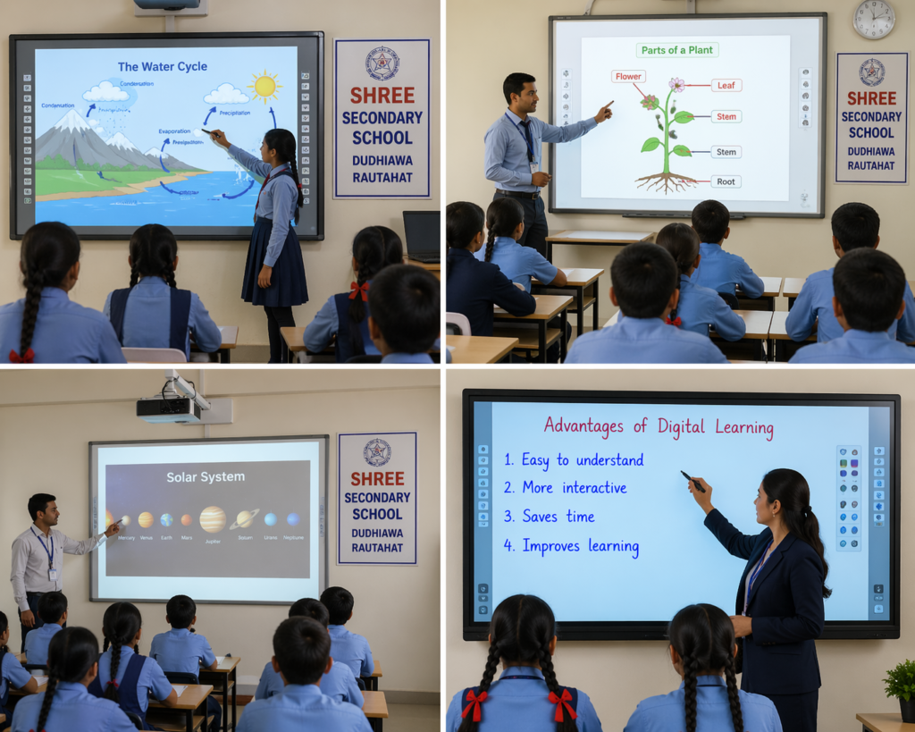 Overall, the use of digital and smart boards at Shree Secondary School Dudhiawa is improving the quality of education. It is making classrooms more engaging, modern, and effective for students.